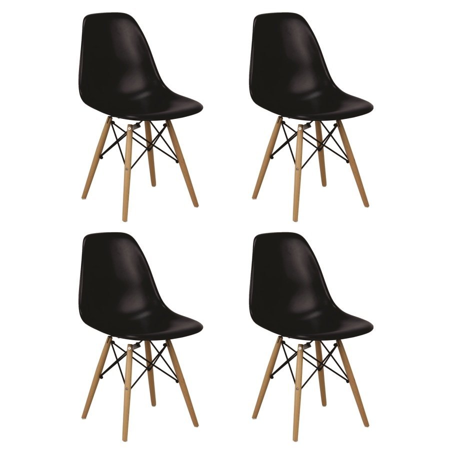 Kit 4 Cadeiras Charles Eames Eiffel Wood Design - Preta