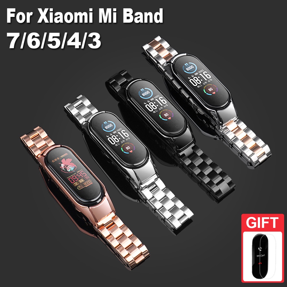 Pulseira De Aço Inoxidável De Substituição De Metal Para Xiaomi Mi Band 7 6 5 4 3