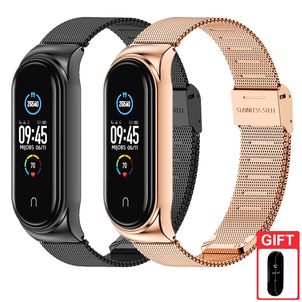 Cinta Milanese Para Xiaomi Mi Band 6 5 4 3 Substituição Pulseira De Metal Em Aço Inoxidável Fecho Magnético Para Miband 3 4 5 6