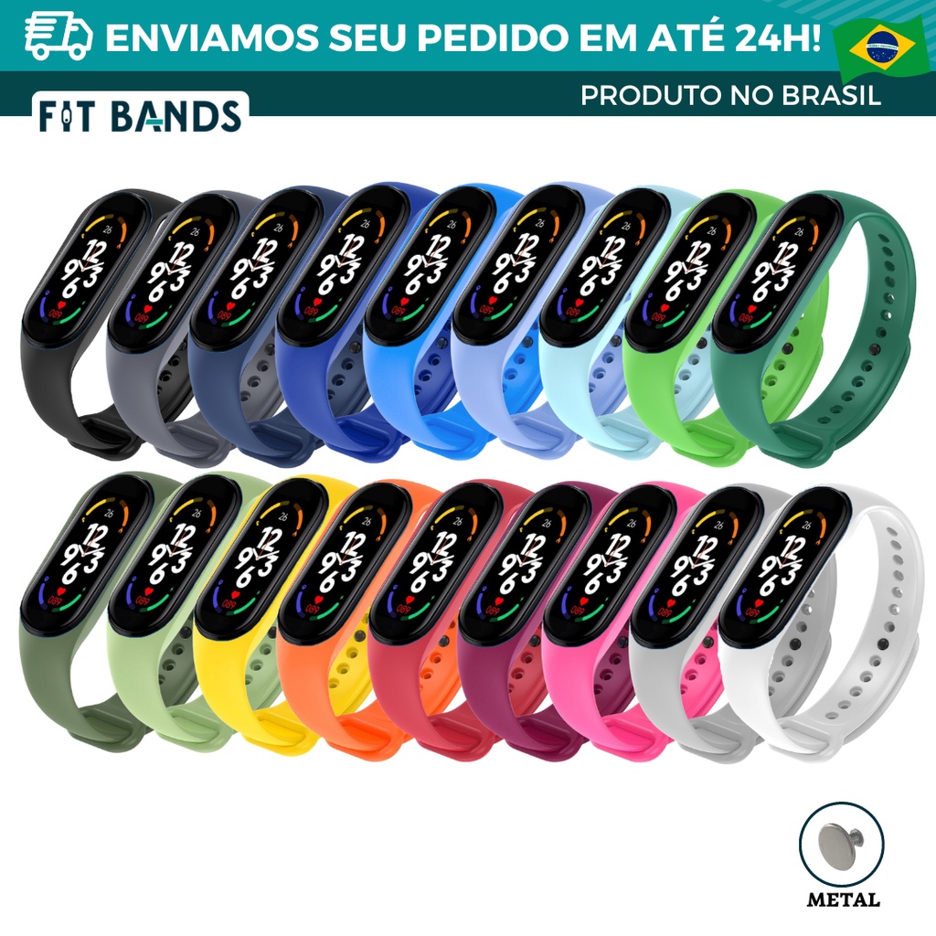 Pulseira de Silicone Para MI band 7 - Pino de Metal - Diversas Cores