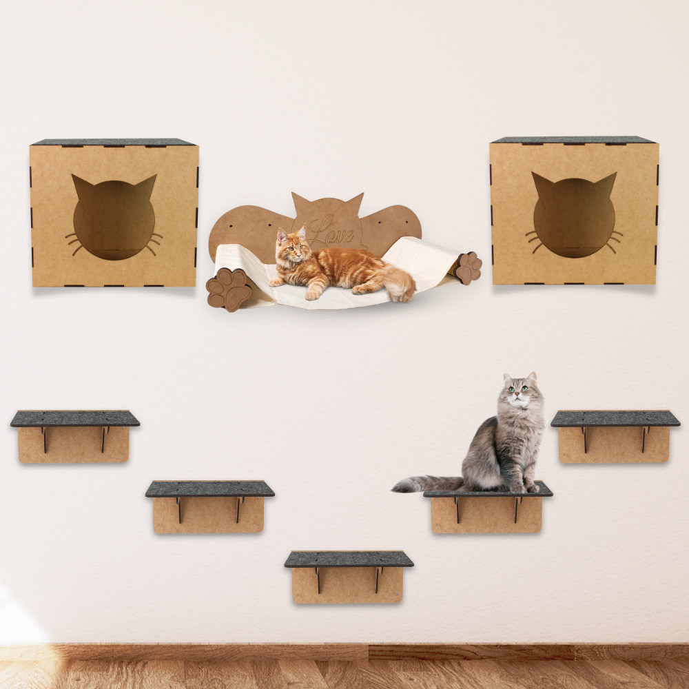Melhores Playground Gatos com Nicho Brinquedo de Gato prateleiras de parede em mdf Rede Kit 8 peças