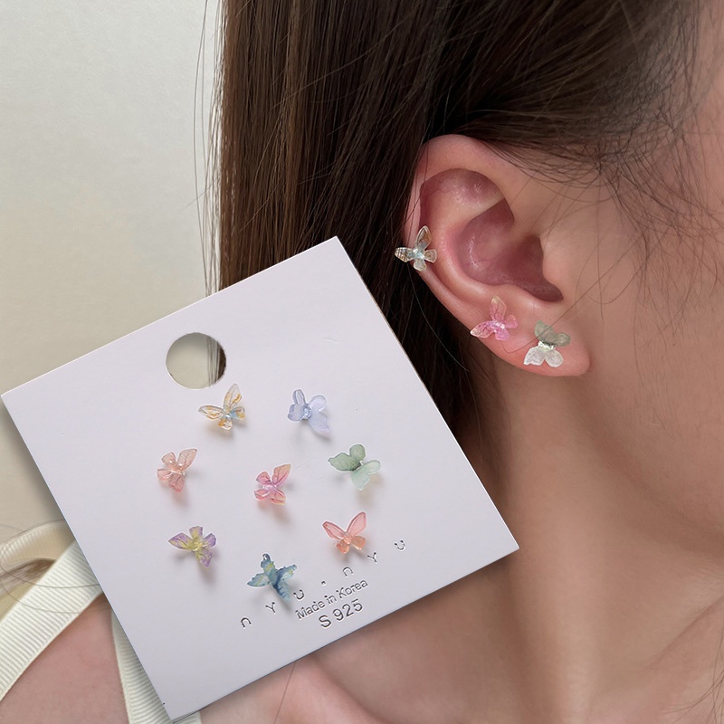 8 Brincos De Resina Cor Arco-Íris De Borboleta De Prata Agulha Transparente Colorido Estilo Coreano Conjunto De Brinco Para Meninas