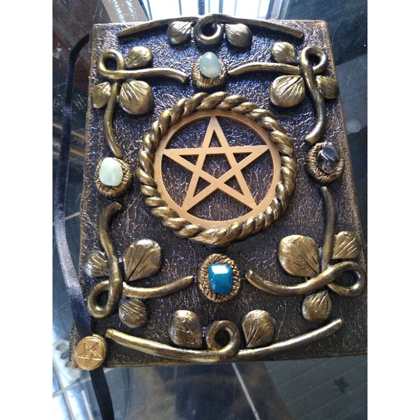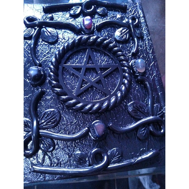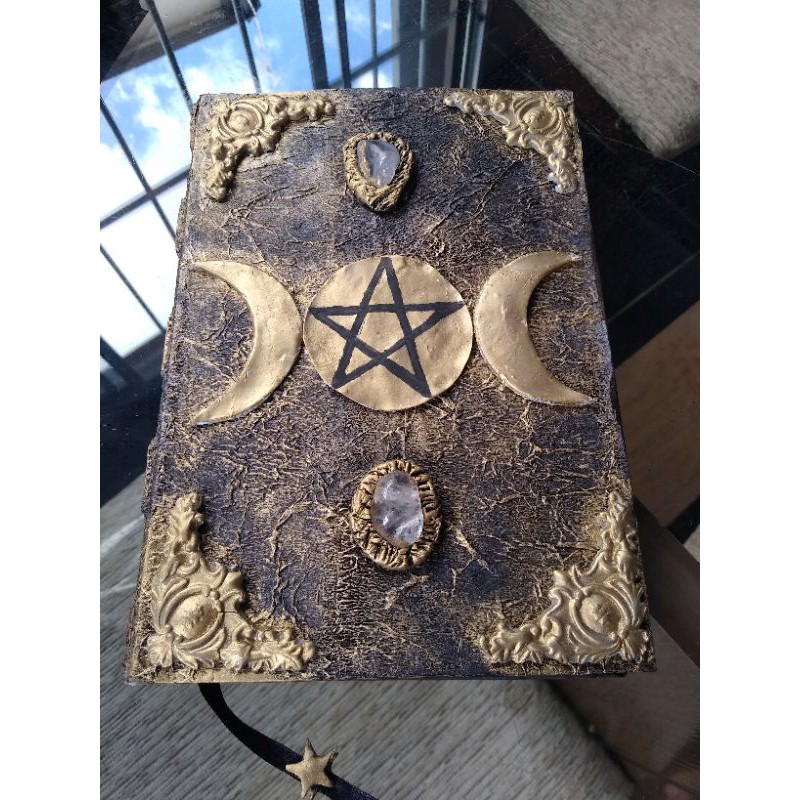 Grimório Livro das Sombras Triluna Com Pentagrama e Pedras Caderno Diário Místico