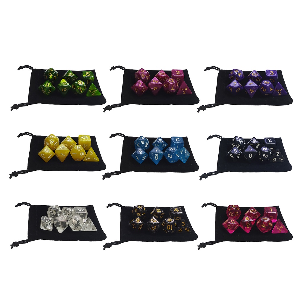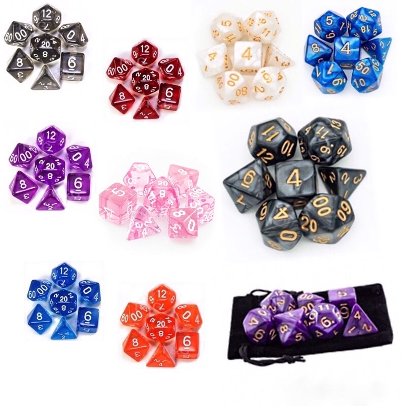 Kit 7 Dados RPG de Mesa mais 1 Bolsa - Várias Cores