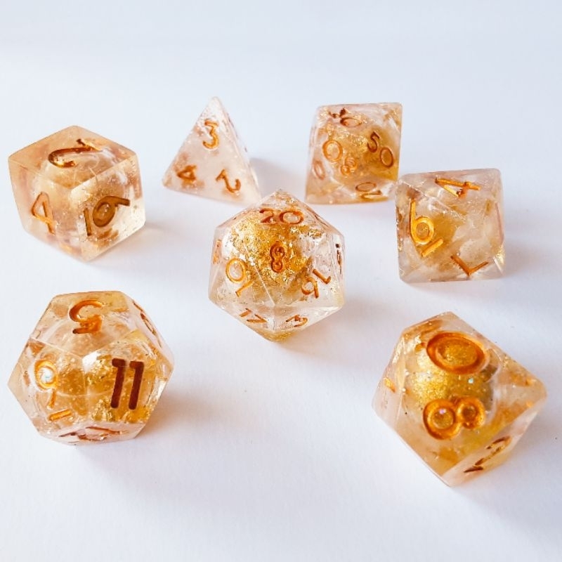 Kit 7 dados de rpg centro líquido em resina RPG de mesa Dnd D&d dungeons and dragons D20 D4 D6 D8 D10 D12 dice