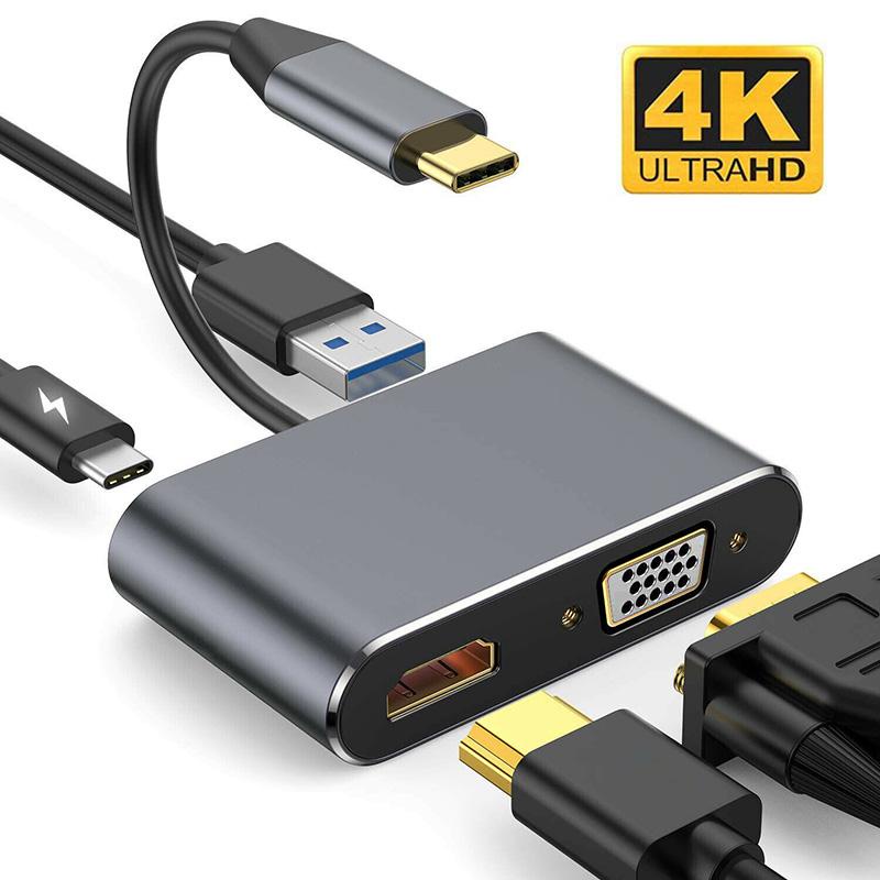 4K Tipo C Para HDMI-Compatível VGA USB 3.0 Conversor 4 Em 1 Estação De Doca Hub Cabo Adaptador Macbook Telefônico Laptop