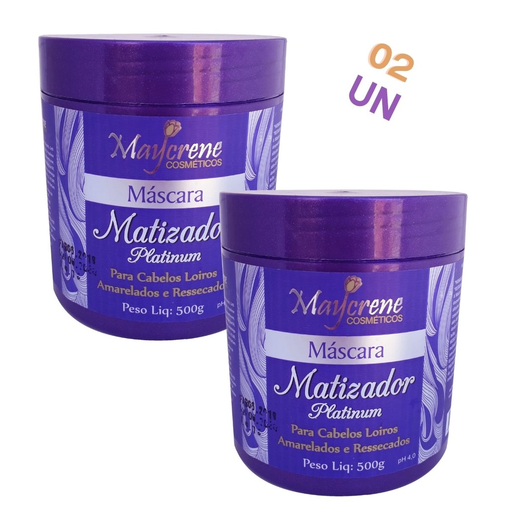 2 Máscara Matizadora Platinum Desamarelador - 500gr - Maycrene