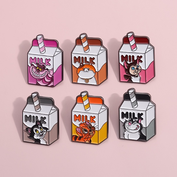Caixa De Leite De Desenho Animado Esmalte Pin Broches De Broche De Metal Para Animais Bonitos Crachás Mochila Vestuário Jóias Acessórios