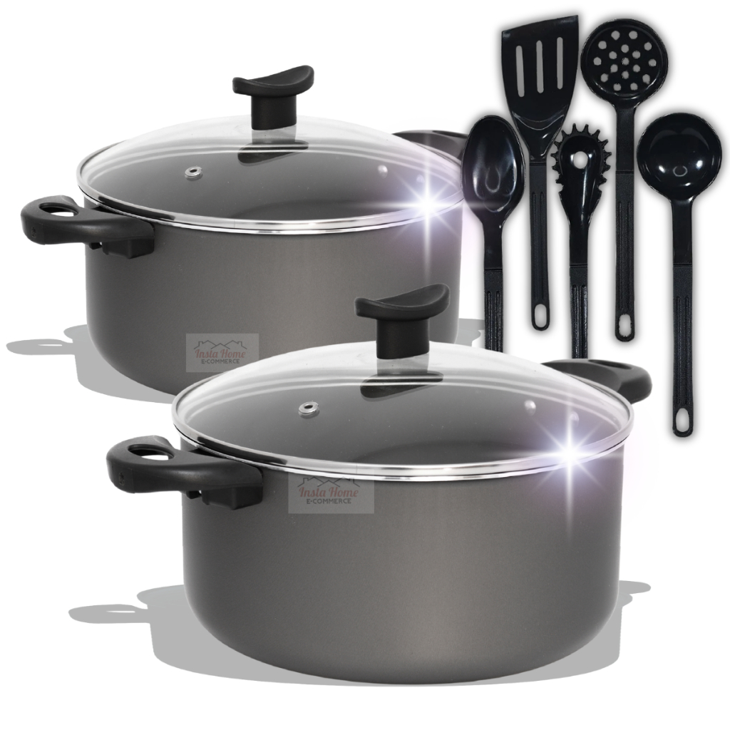 Kit Panelas Caçarolas 07 Pçs TAMANHO GRANDE 22 e 24 cm Antiaderente Teflon Com Utensílios