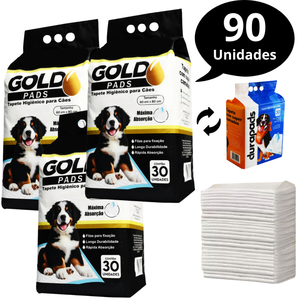 Kit 3 Tapete Higiênico para Cachorro Goldpads 80 x 60 cm - 90 Unidades