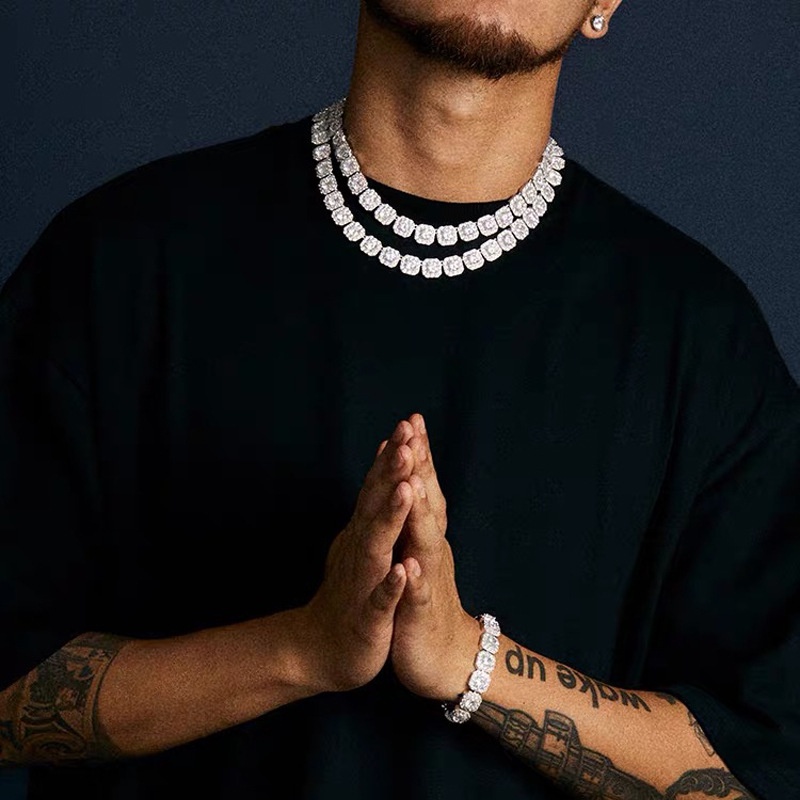 2023 Novo Corrente Cravejada Corrente Cubana De Tendência Com Pingente Geng Fantasma Em Forma De Desenho Animado Prata Metal Hip Hop Colar Corrente