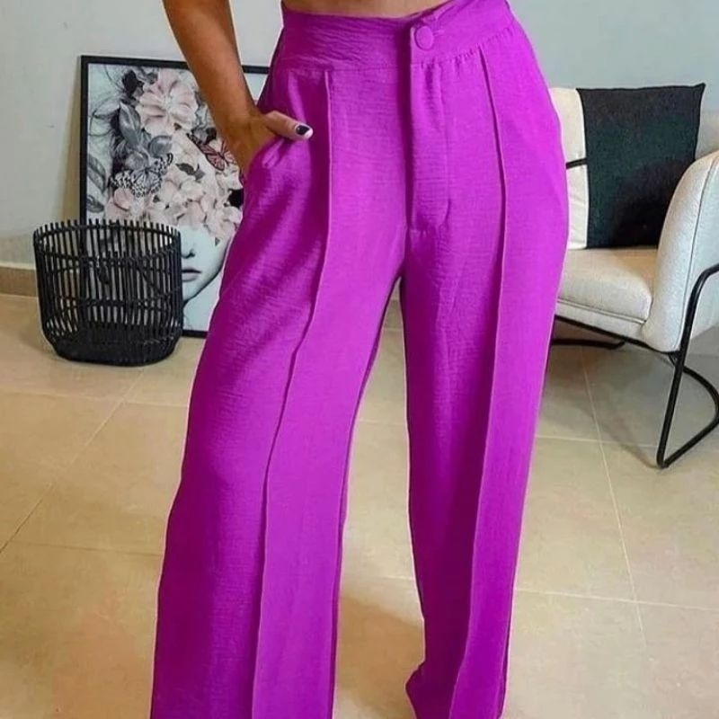 Calça Pantalona cintura alta tecido De Duna social estilo alfaiataria detalhe nas costa de elástico com zíper BOTÃO forrado no mesmo tecido - Várias Cores