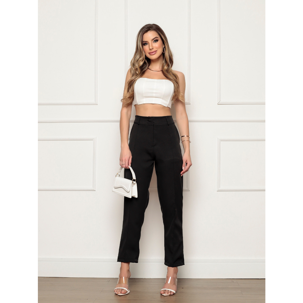Calça Alfaiataria Feminina Com Ziper e Botão Conforto e Elegância