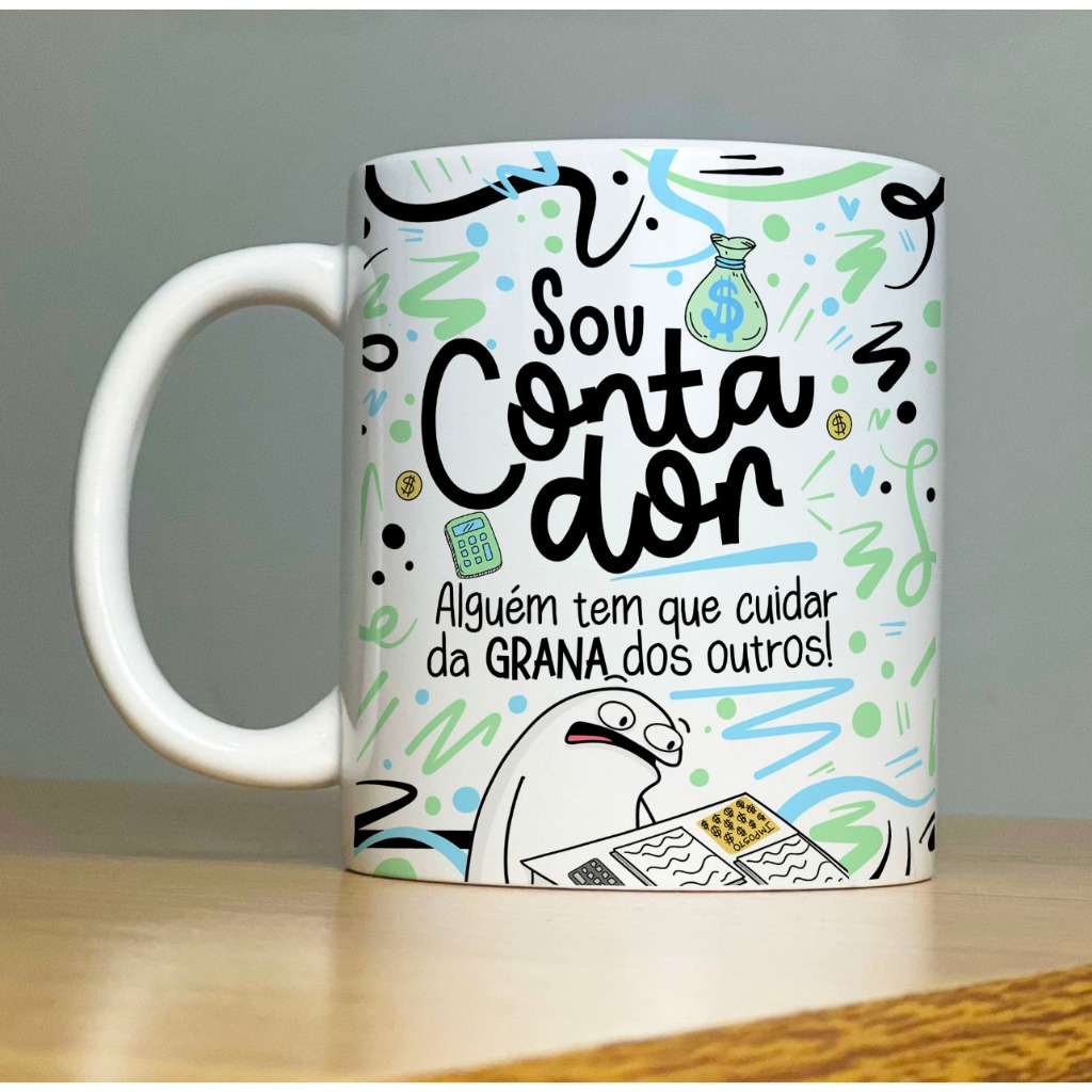 Caneca Personalizada de porcelana – Profissão: Sou Contador - Sou Contadora - Com Flork - 325ML