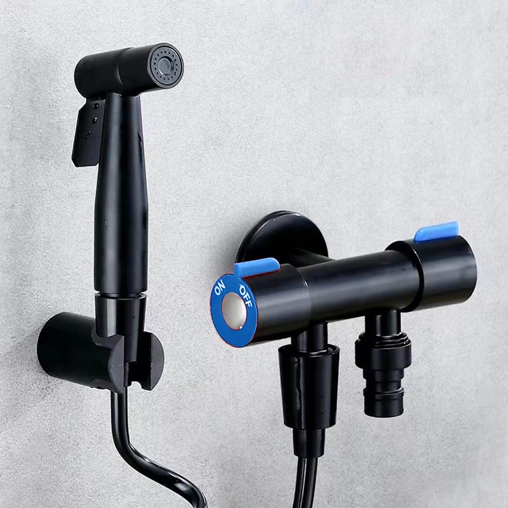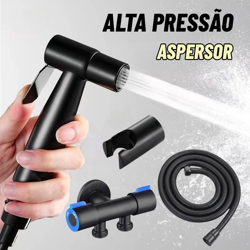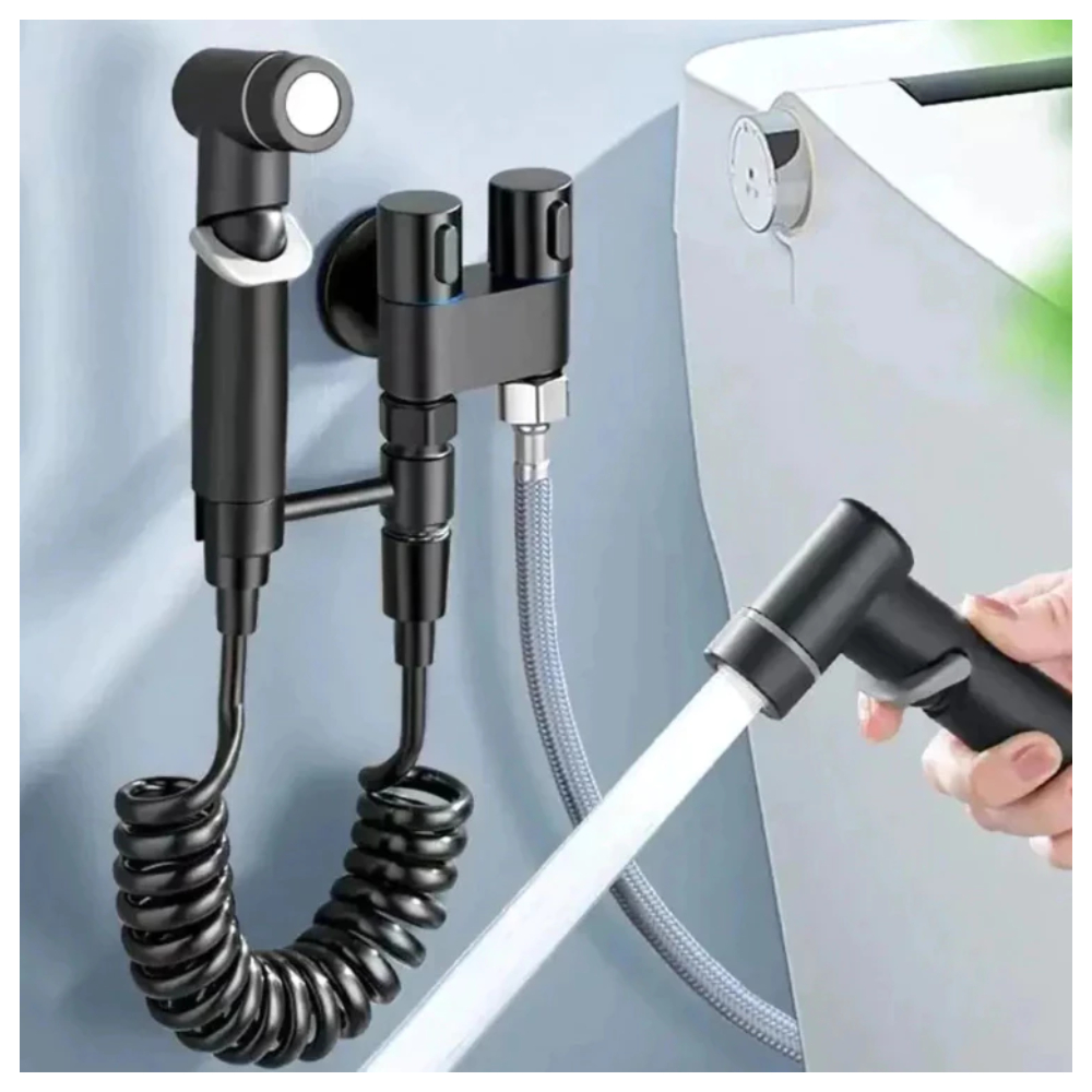 Kit Ducha Higiênica Com Registro Torneira Dupla em Aço Inox 304 Aço Escovado Banheiro Lavabo-PRETO