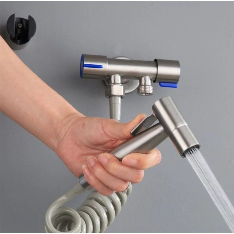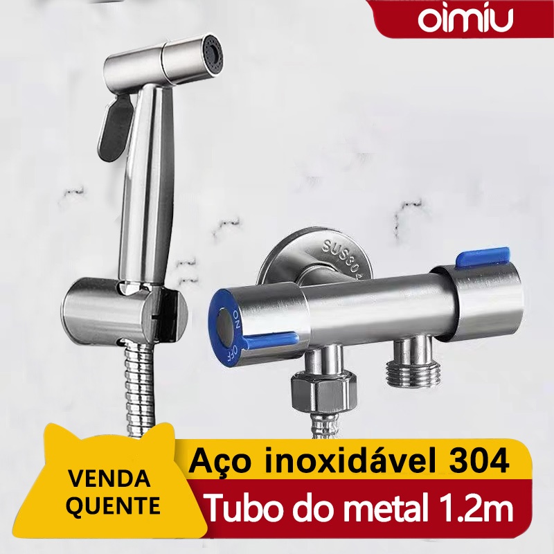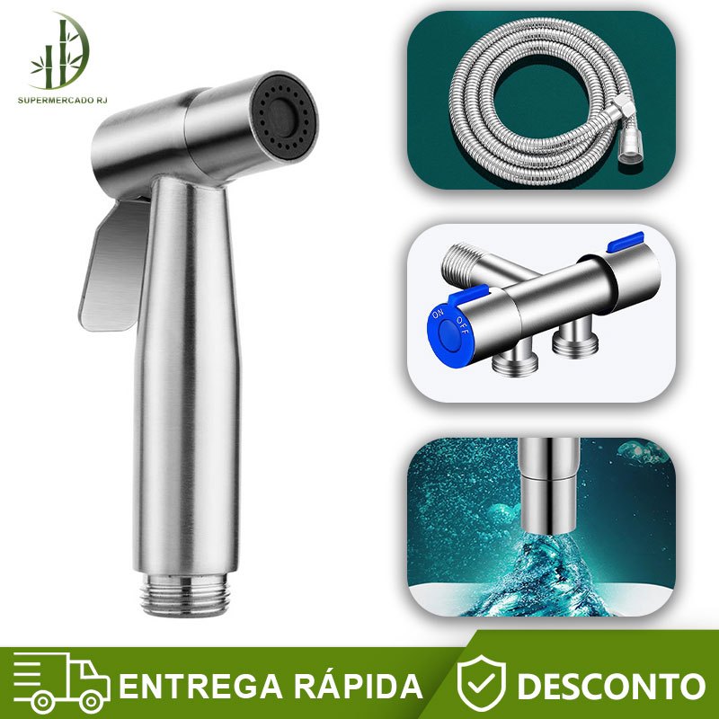 Kit Ducha Higiênica Com Registro Torneira Dupla em Aço Inox 304 Aço Escovado Banheiro Lavabo