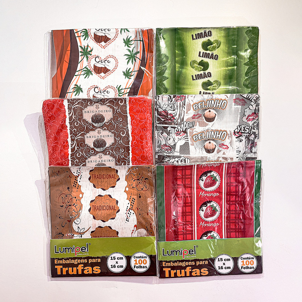 500 EMBALAGEM PARA TRUFA 14,5X15,5CM GOSTOSURA 5 PACOTE 100UN ESCOLHA SABOR CROMUS