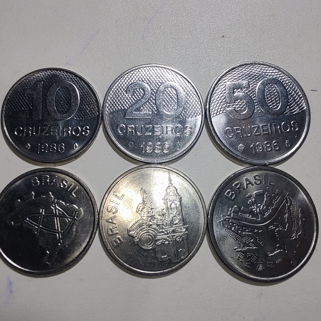 Escassas Moedas de 10, 20 e 50 Cruzeiros de 1986 (Integração Nacional, Igreja e Plano Piloto de Brasília)