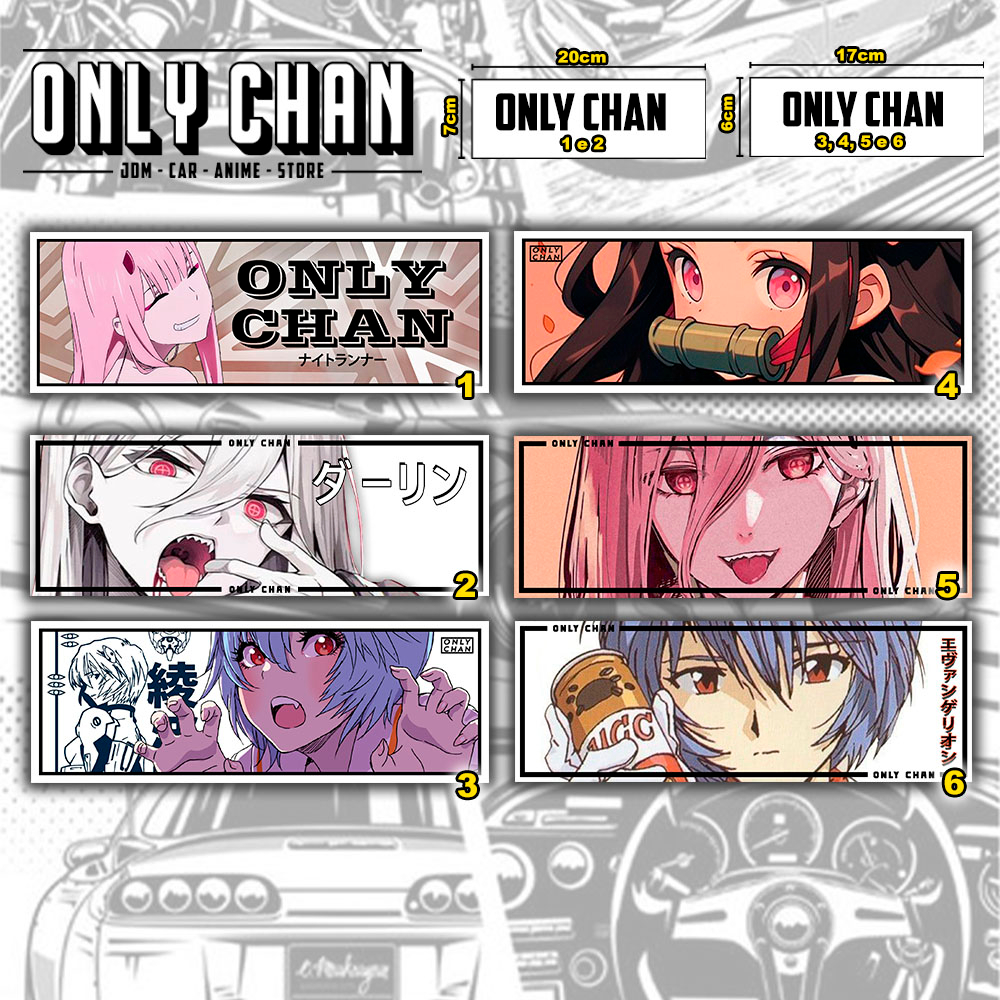 Adesivo Sticker Anime JDM Personagens (Zero Two, Power, Rei, Nezuko, Evangelion) Carro