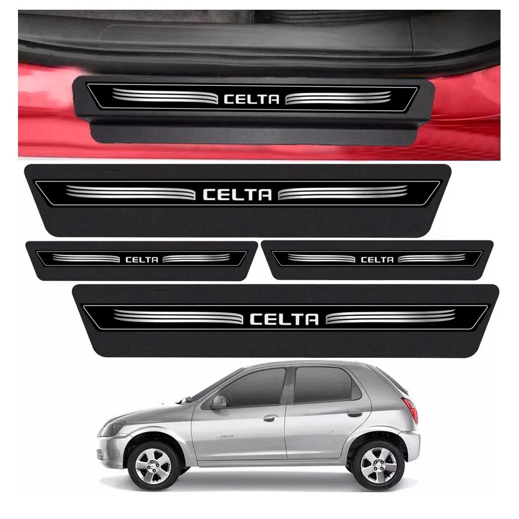 Kit 8 Peças Adesivo Carro Soleira Proteção Porta GM Celta 4 Portas - Preto
