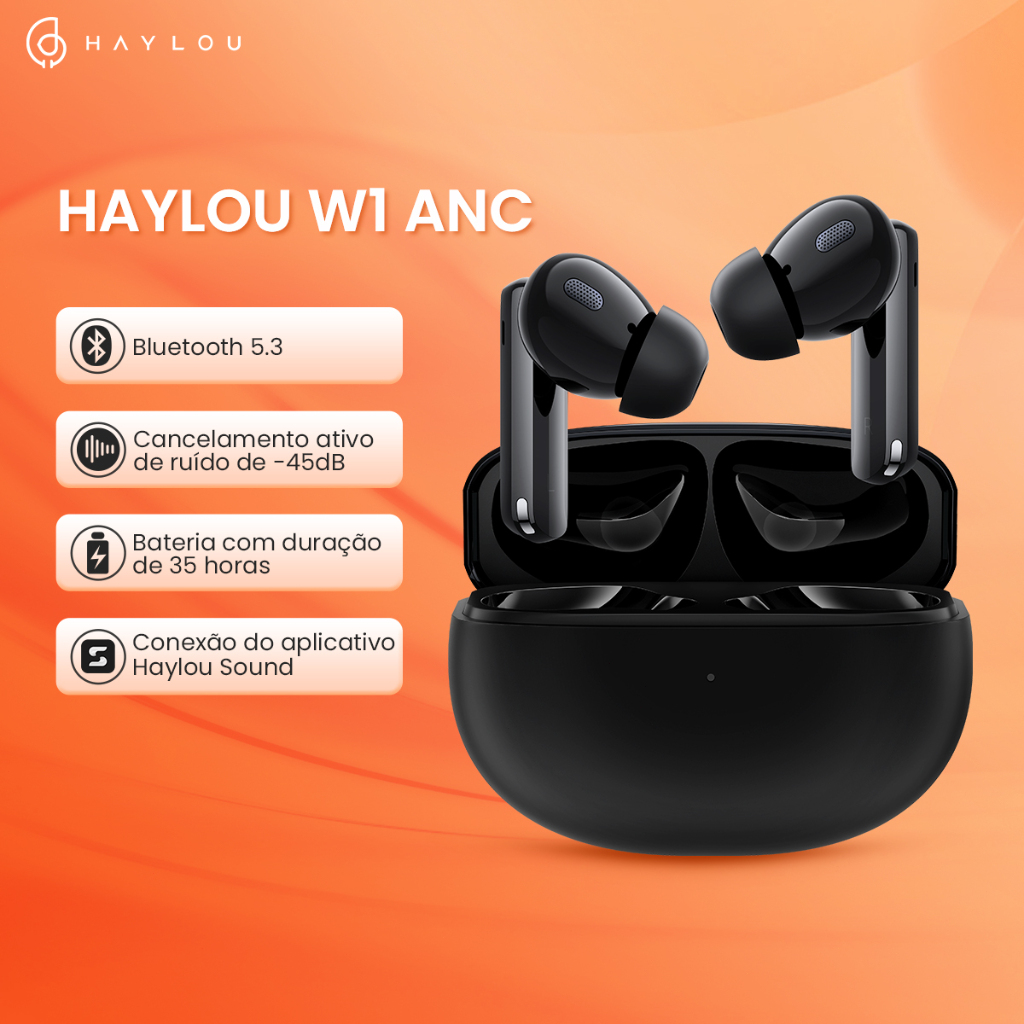 Haylou W1 ANC TWS Fones Sem Fio -45db ANC Bluetooth 5.3 Fone de Ouvido Prêmio Hi-Fi Som 35 Horas de Duração da Bateria