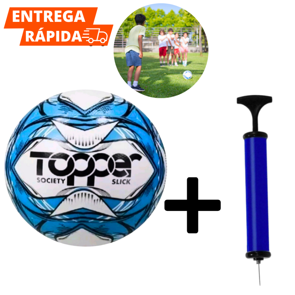Kit Bola De Futebol Society Oficial Topper Original Com Uma Bomba De Ar Manual Kit Para Diversão