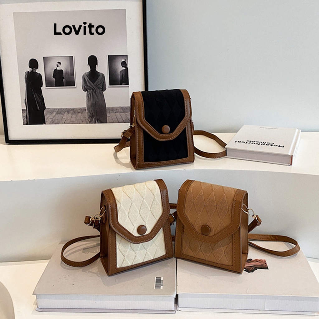 Lovito Casual Bolsa de Ombro Feminina Pequena de Argila Colorblock com Costura de Tecido LFA12016