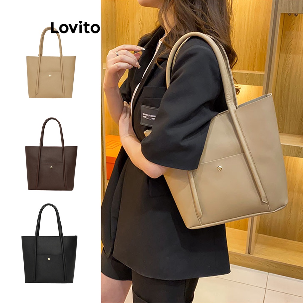 Lovito Casual Bolsa de Ombro Feminina Lisa com Zíper L50AD113 (Cáqui/Marrom/Cinza/Preto)