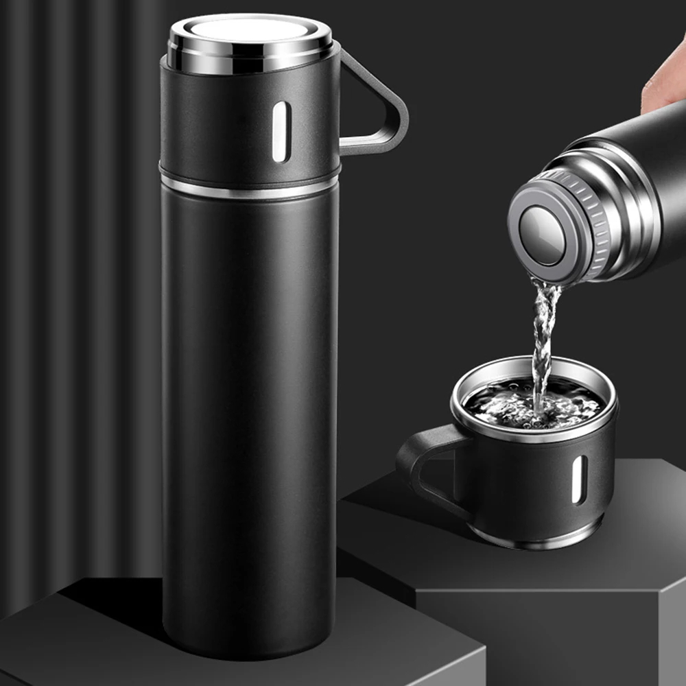 Garrafa Garrafinha Termica 500 ML Com 3 Copos Aço Inox 304 De Café Agua Suco Cerveja Terere Parede Dupla À Vácuo Mantém 12 Horas Gelada 6 Horas