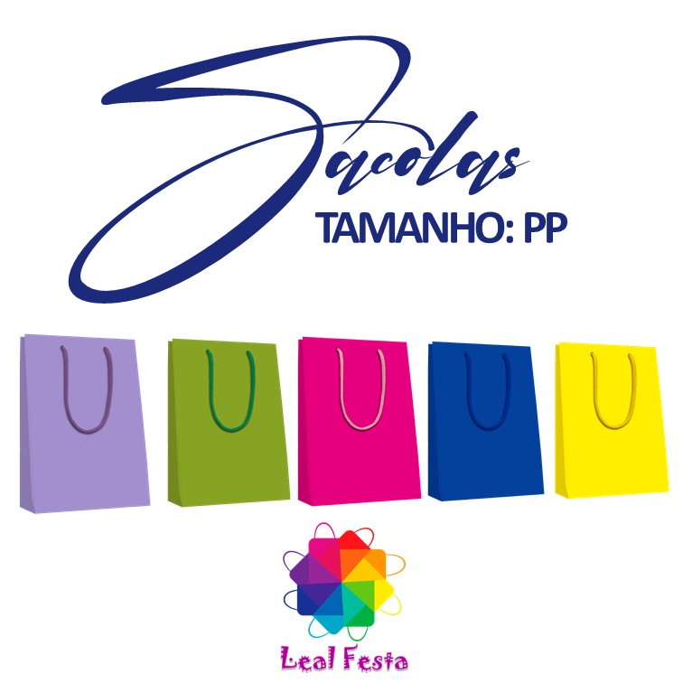 Sacolas Coloridas de Papel Kraft Alça de Cordão 10 Unidades PP