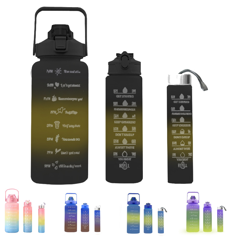 Kit 3 Garrafa De Água Motivacional De Grande Capacidade Portátil De 2000ML+900ML+300ML Em Degradê