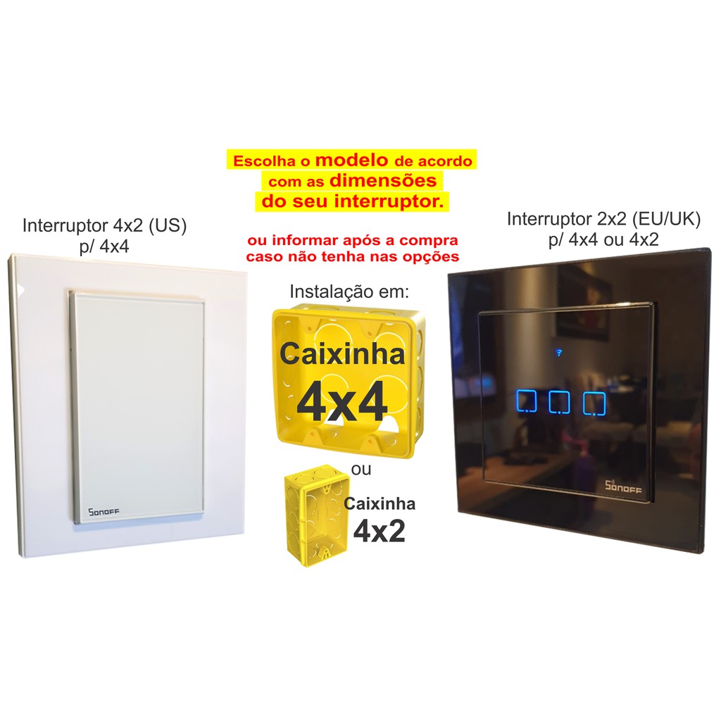 Adaptador Suporte 4x4 4x2 p/ Interruptor 4x2 US ou 2x2 UK/EU - SonOff Novadigital Avatto Moes Todas as Marcas