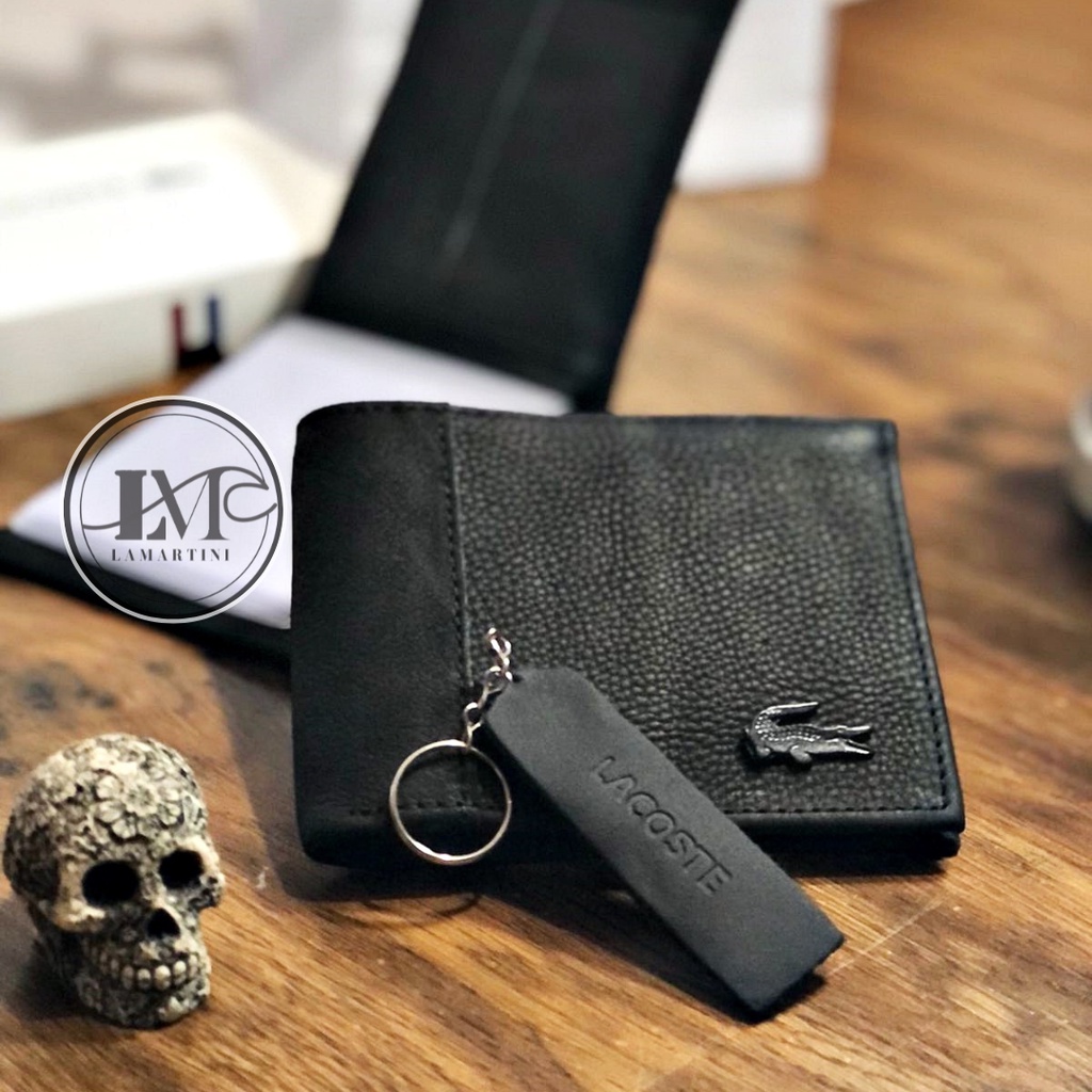 Carteira masculina metal Lacoste em Couro Kit Chaveiro e Bolsa de Presente