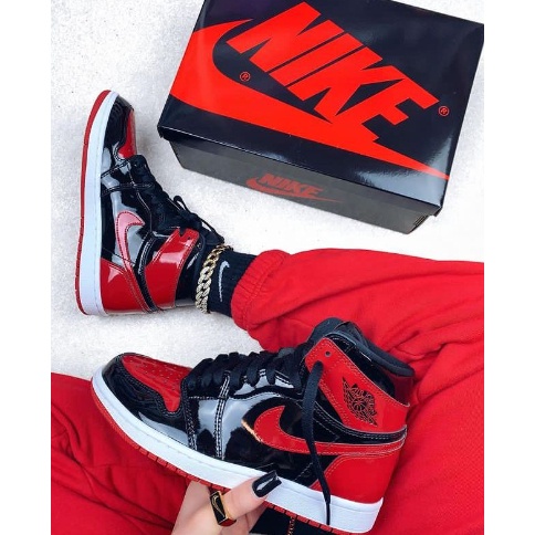 BOTA JORDAN RETRO 1 VERNIZ PRETO/VERMELHO (COM CHAVEIRO EM METAL)