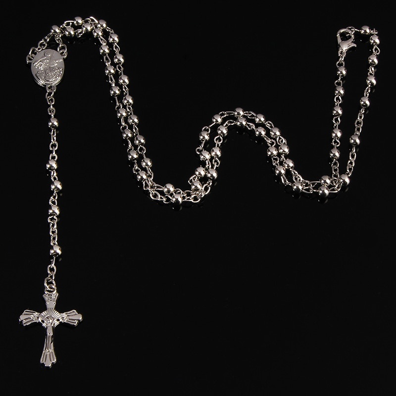 4mm Ros Ário Colar. Contas De Aço Inoxidável Cadeia Longa. Mary Centro Igreja Ícone Benção Rosa Ros Ário Colar.. 1 Pcs