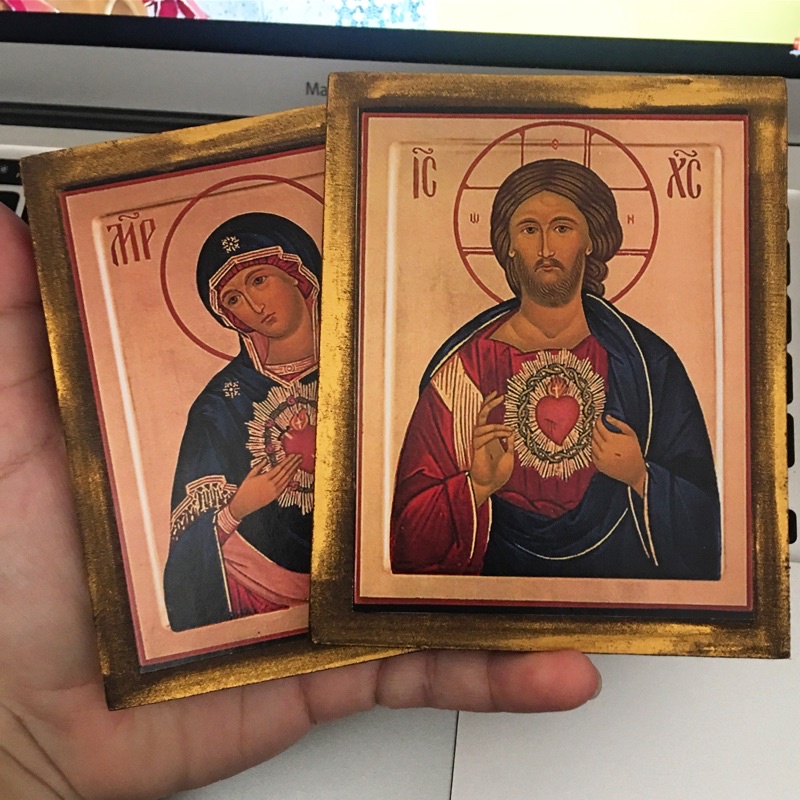Ícone Sagrado Coração de Jesus 10cm + Ícone Imaculado Coração de Maria 10cm