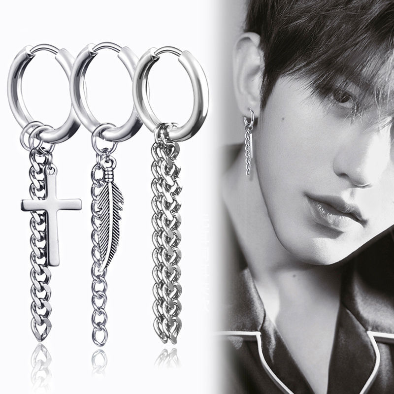 kit 3 pçs brincos de argola prata cruz corrente precisar de furo estilo clik masculino feminino em aço inox não escurece