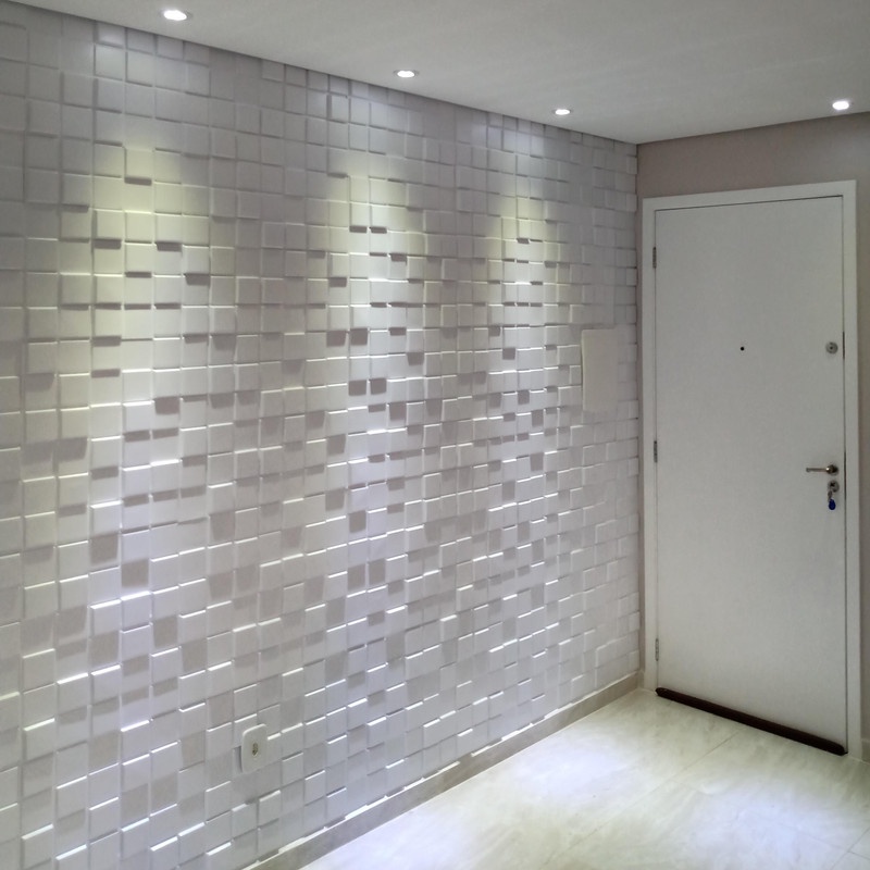 Placa 3D Decorativa Revestimento de Parede e Teto Auto Relevo Pixel Branca 50x50cm