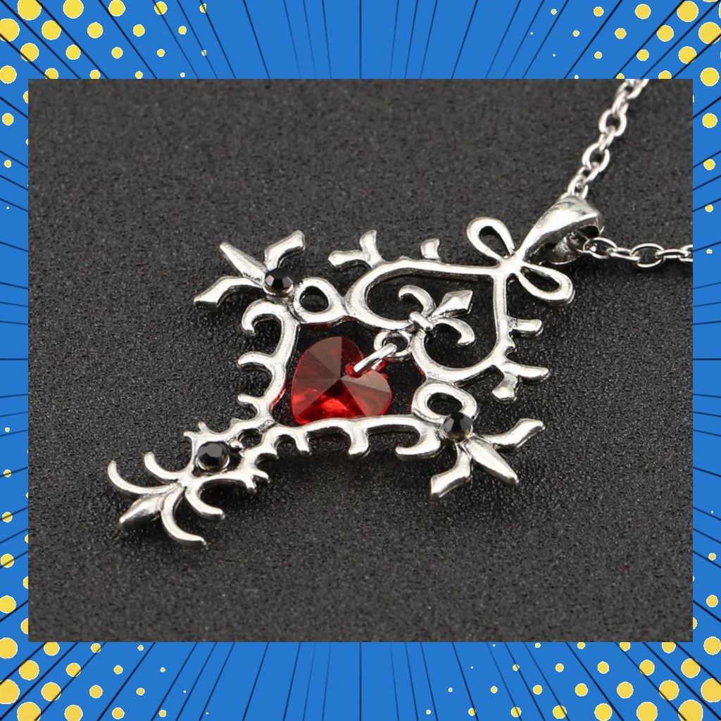Colar The Vampire Diaries - O diário do Vampiro - Cruz Coração Vermelho Acrílico - Nerd Geek Cosplay