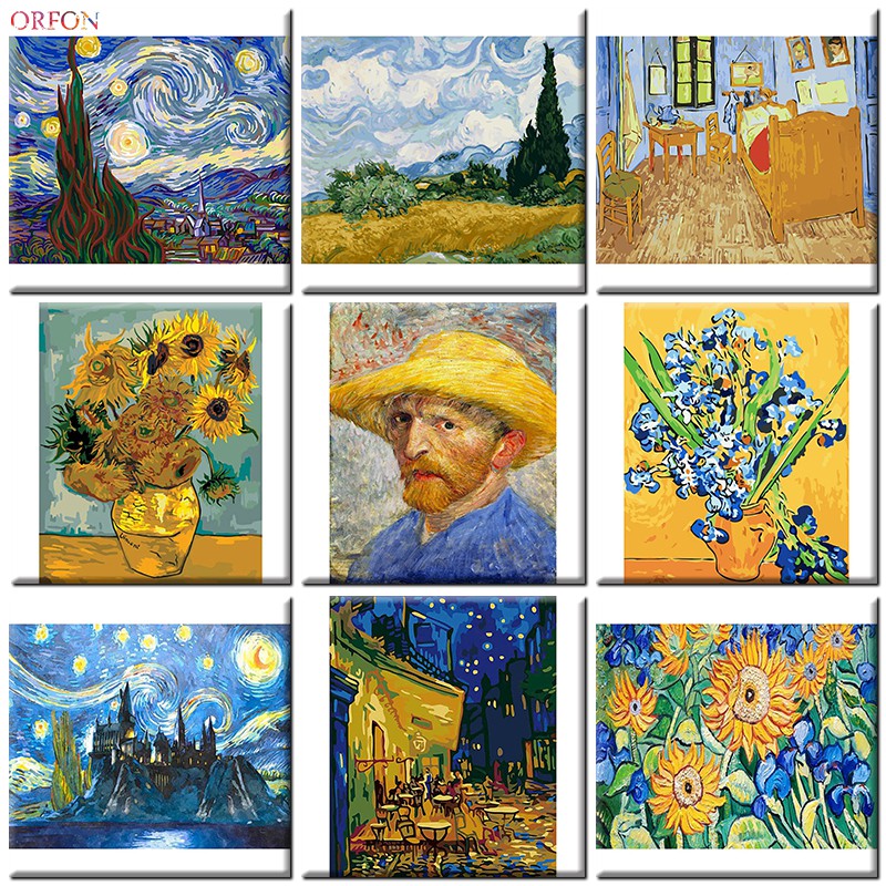 (ORFON) A Noite Estrelada Van Gogh Cenário Pintura Por Números Presente DIY Óleo Digital Em Tela De Decoração Para Casa