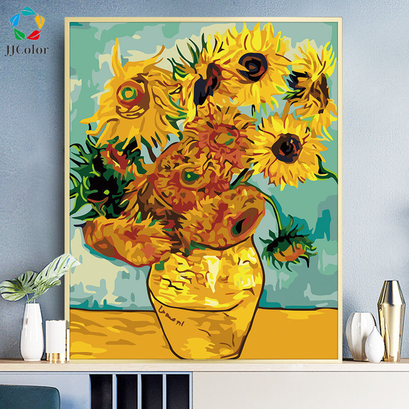 Pintura Numerada Para Crianças & Adultos Sem Moldura Girassol Por Van Gogh Diy Kit Com Acrílico Pintura & Escova Decoração Parede
