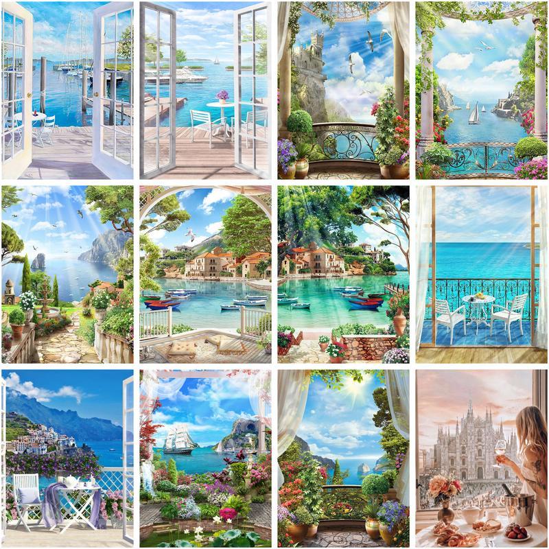 RUOPOTY Tinta Clássica Por Números Sobre Tela Desenho De Janela De Cenário Para Pintura Decoração De Sala De Estar