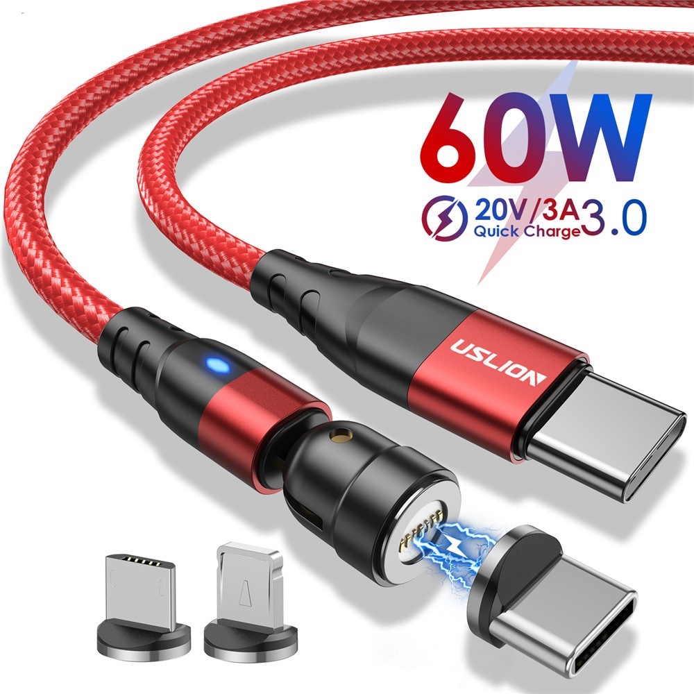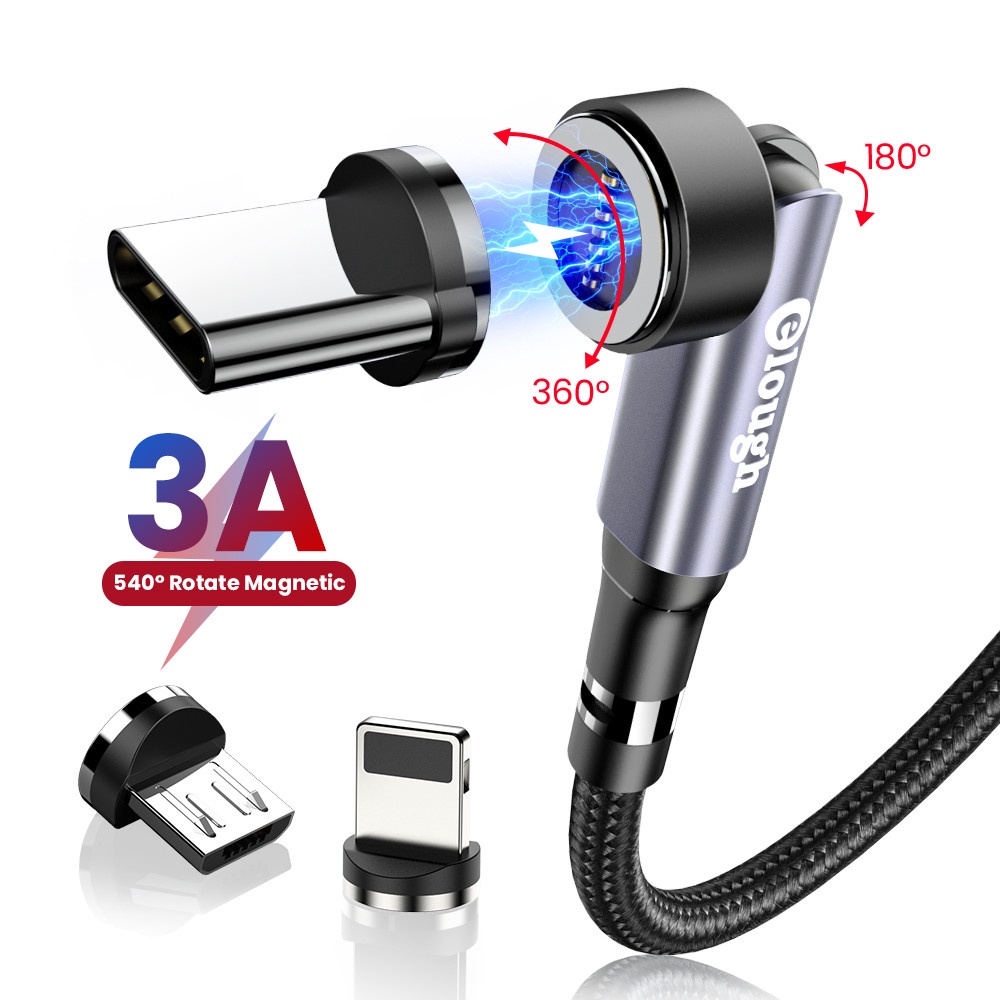 Elough 3A Magnética Cabo de Carregamento Rápido 540 Carregador Giratório Para Huawei Micro USB Tipo C Fio de Dados
