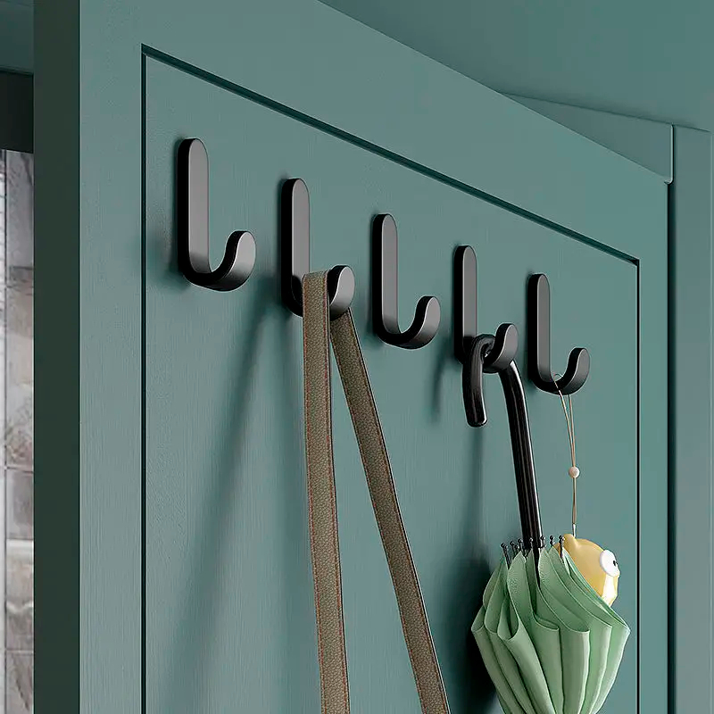 kit 06 gancho multiuso - gancho - gancho de parede - cabide organizador - cabideiro - cor preta em metal