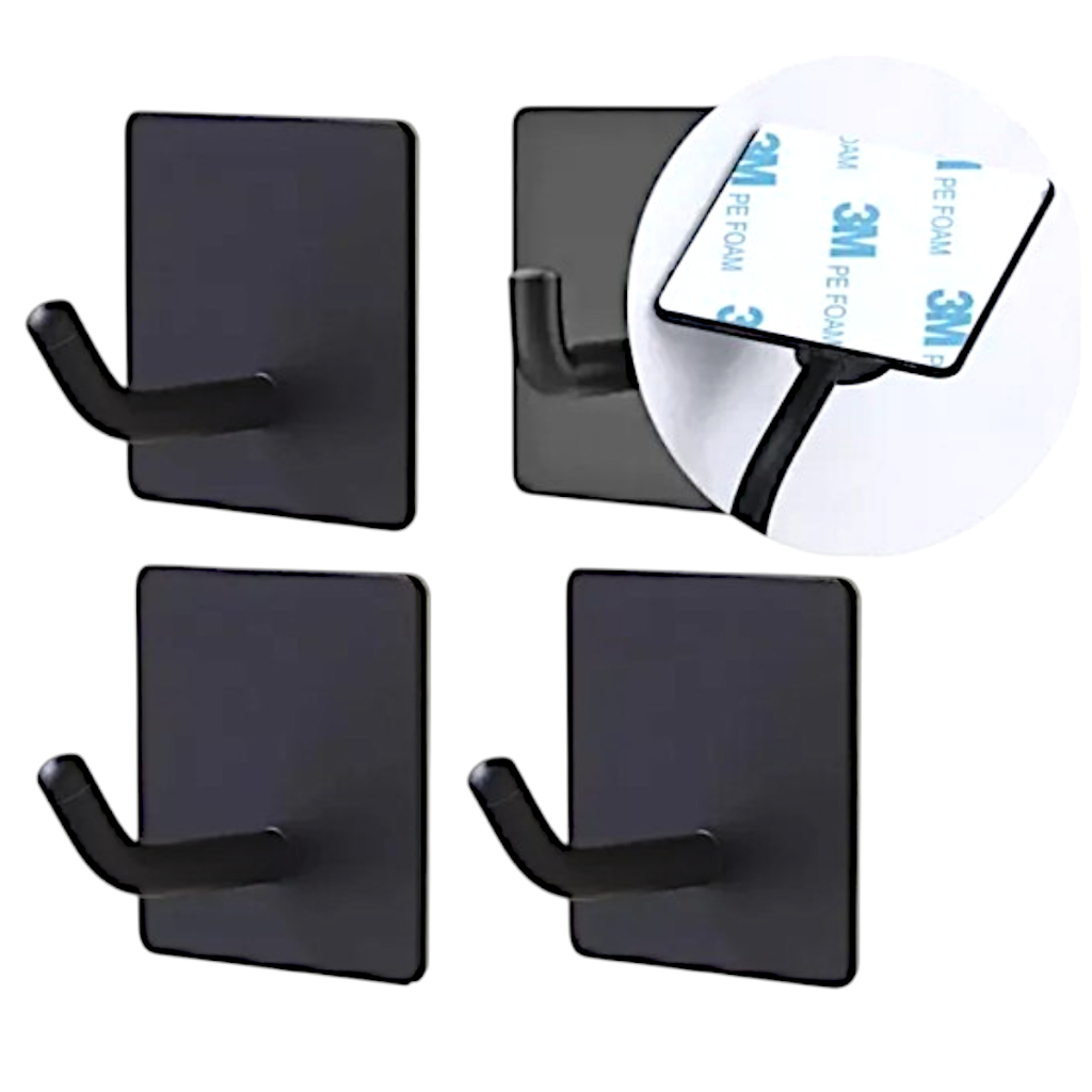 Gancho Adesivo Cabide de Parede Organizador Ferro 3M Preto Pendurar Toalhas Roupas - Kit 3 Unidades