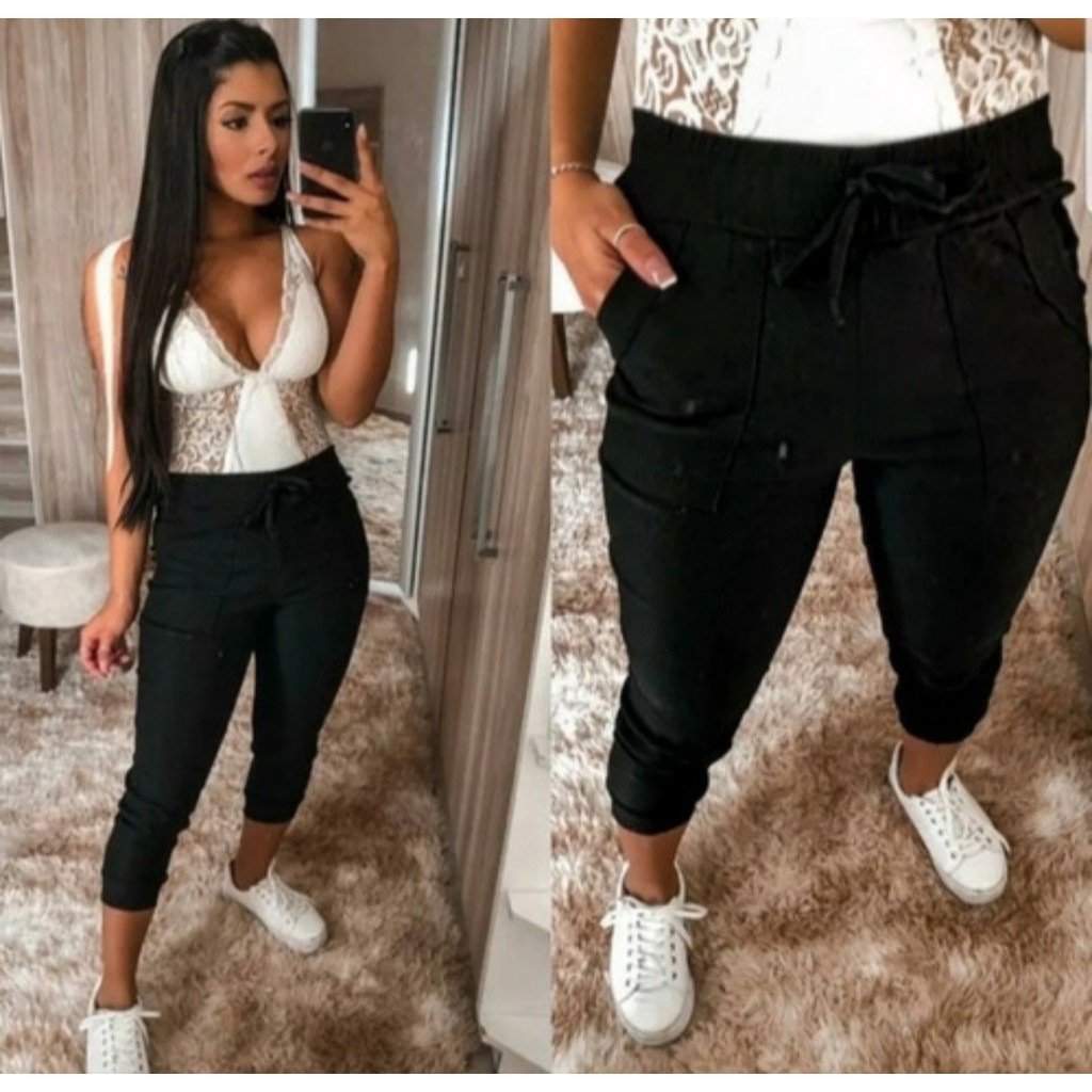 Calça Jogger Feminina BENGALINE Bolso Cordão Promoção Lançamento