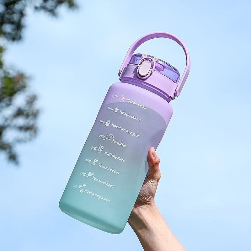 Garrafa de Água Squeeze Multicolor 2 Litro 900Ml Grande Capacidade Portátil Motivacional Academia Infantil Escola