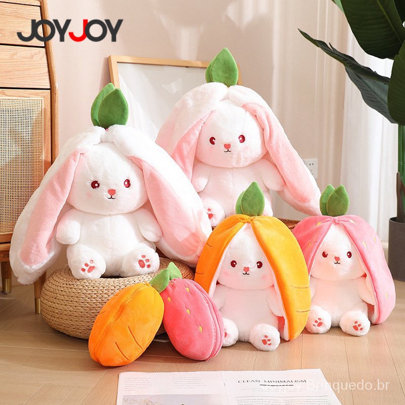 25cm Lindo brinquedo de pelúcia de coelhinho da Páscoa, almofada de cenoura/morango, pelúcia reversível com zíper, travesseiro de coelho de pelúcia com orelhas de coelho para presente de aniversário e Páscoa para crianças