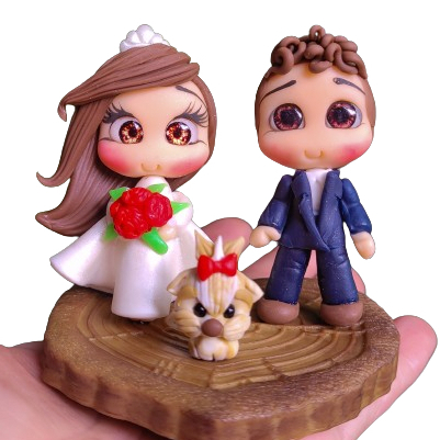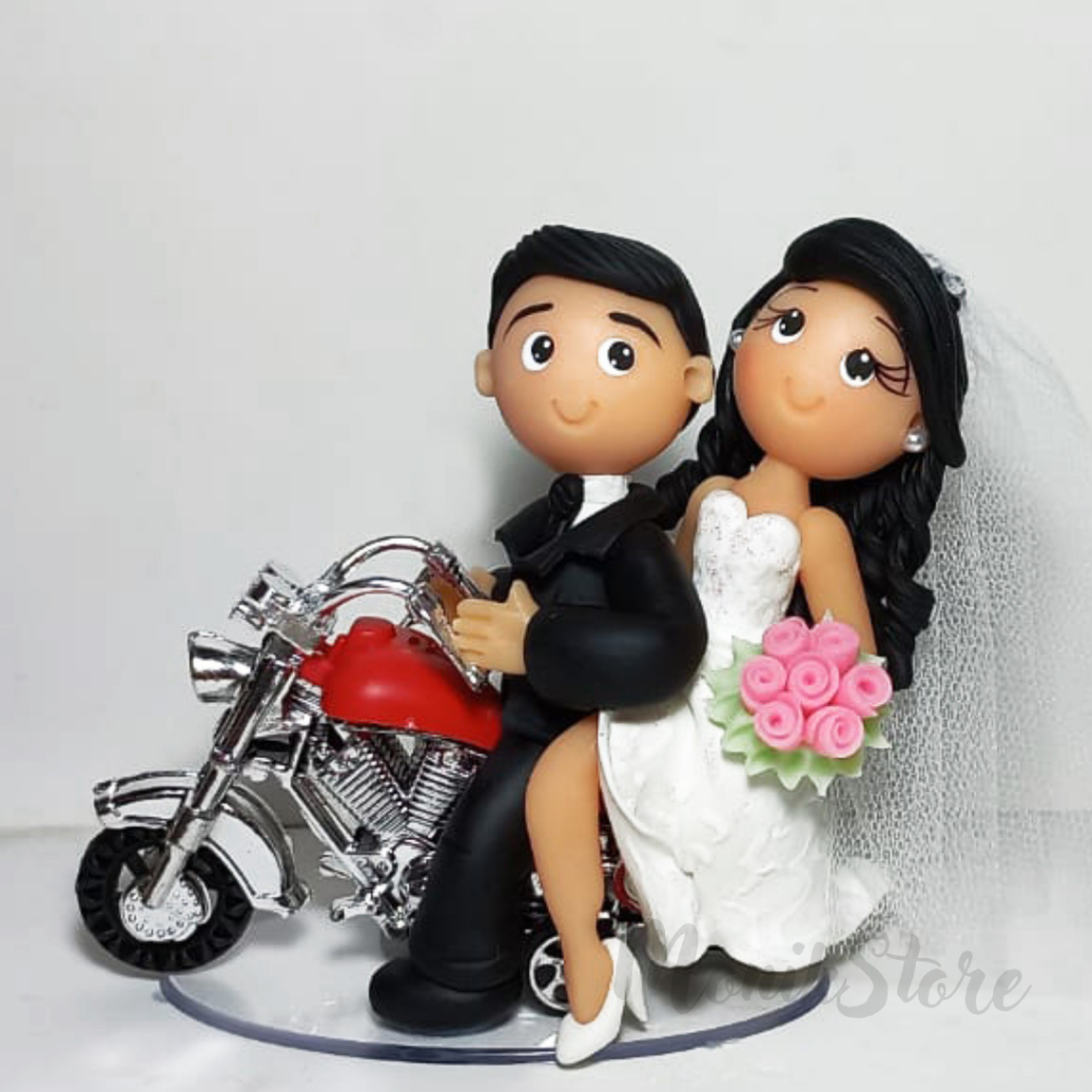 Topo de Bolo Casamento Personalizado Casal Novinhos Noivos em Biscuit Festa Artesanal