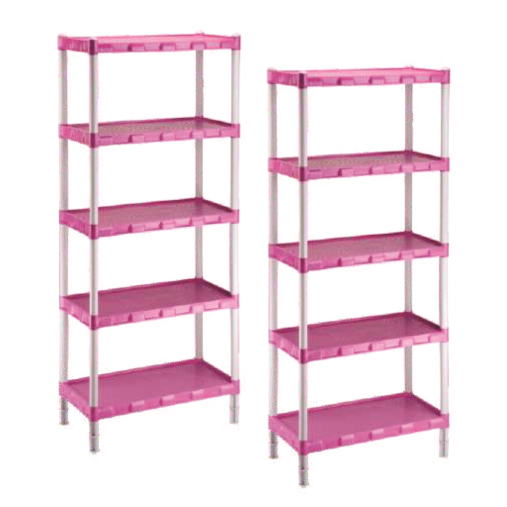Kit 2 Estantes Organizadora Multiuso Utilidades Modular de Plástico 5 Prateleiras Rosa com Pezinhos